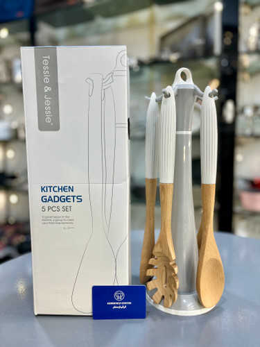 سرویس کفگیر ملاقه چوبی دسته سیلیکونی کرمی