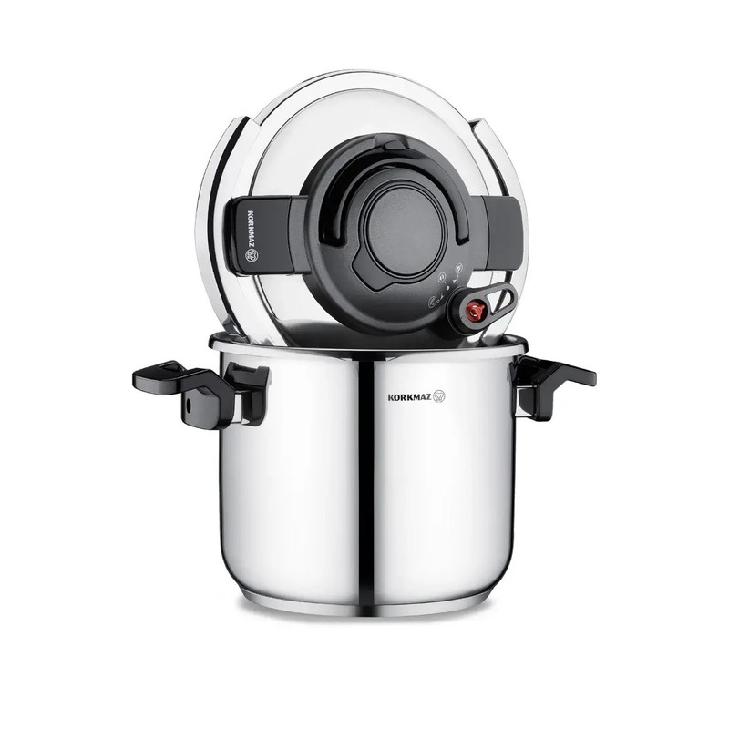 دارای ظرفیت 5 لیتر - ۲۲ سانتیمتر جنس : فولاد ضد زنگ Cr-Ni 18/10 پایه کپسول آلومینیومی با هدایت حرارتی همگن سازگار با القای الکتریکی عملکرد پخت تحت فشار ۲ مرحلهای