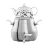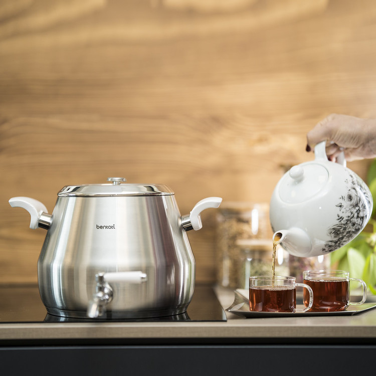 صفحه (دیسک) فشرده سه لایه در کف محصول، حرارت را سریع تر و به طور یکنواخت در سطح ظرف پخش می کند و باعث جلوگیری از تجمع گرما در یک نقطه می شود مطمئن برای استفاده بر روی انواع اجاق گاز گنجایش کتری: 5 لیتر گنجایش قوری: 1 لیتر نگهداری: از قرار دادن کتری خالی بر روی اجاق داغ خودداری نمایید قوری را هرگز بر روی حرارت مستقیم قرار ندهید بر روی شعله ی کم و کوچکتر از اندازه کف کتری قرار گیرد توصیه می شود با آب گرم و مایع ظرفشویی شسته شود و پس از آبکشی، با حوله نرم خشک شود برای شستشو از سیم ظرفشویی و اسکاچ های زبر استفاده نکنید. برای بهترین نتیجه، با پارچه و یا اسفنج نرم نظافت شود.