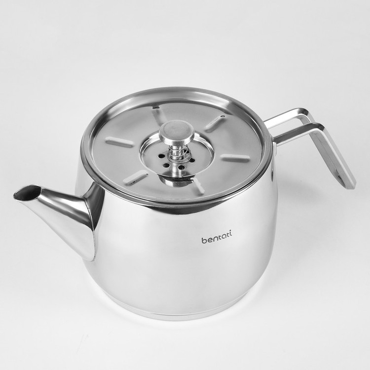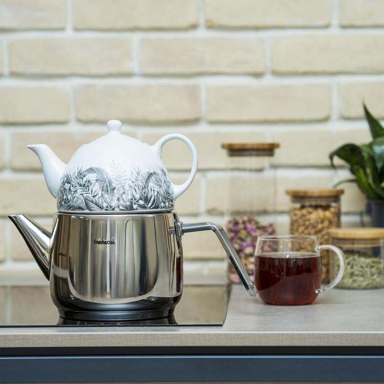 صفحه (دیسک) فشرده سه لایه در کف محصول، حرارت را سریع تر و به طور یکنواخت در سطح ظرف پخش می کند و باعث جلوگیری از تجمع گرما در یک نقطه می شود مطمئن برای استفاده بر روی انواع اجاق گاز گنجایش کتری: 2 لیتر گنجایش قوری: 1 لیتر نگهداری: از قرار دادن کتری خالی بر روی اجاق داغ خودداری نمایید قوری را هرگز بر روی حرارت مستقیم قرار ندهید بر روی شعله ی کم و کوچکتر از اندازه کف کتری قرار گیرد توصیه می شود با آب گرم و مایع ظرفشویی شسته شود و پس از آبکشی، با حوله نرم خشک شود برای شستشو از سیم ظرفشویی و اسکاچ های زبر استفاده نکنید. برای بهترین نتیجه، با پارچه و یا اسفنج نرم نظافت شود. ساخته شده از: کتری، درپوش و دستگیره از جنس استیل ضد زنگ 10/18، قوری از جنس چینی