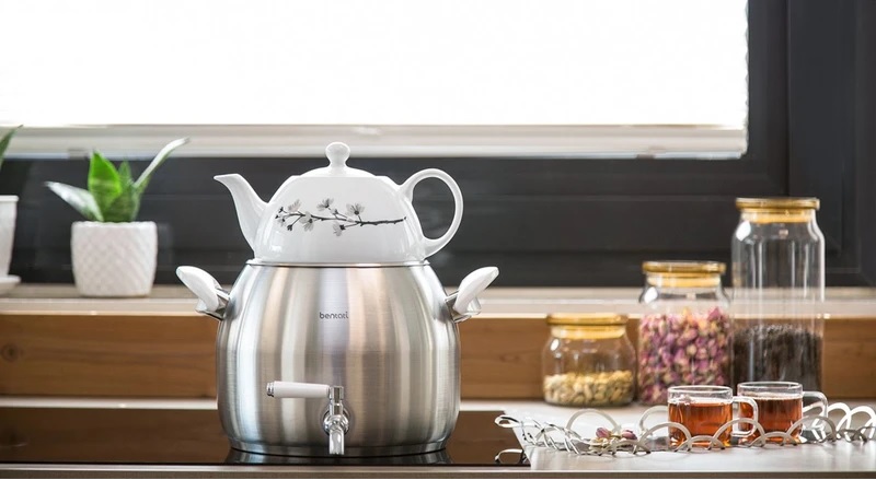 صفحه (دیسک) فشرده سه لایه در کف محصول، حرارت را سریع تر و به طور یکنواخت در سطح ظرف پخش می کند و باعث جلوگیری از تجمع گرما در یک نقطه می شود مطمئن برای استفاده بر روی انواع اجاق گاز گنجایش کتری: 5 لیتر گنجایش قوری: 1 لیتر نگهداری: از قرار دادن کتری خالی بر روی اجاق داغ خودداری نمایید قوری را هرگز بر روی حرارت مستقیم قرار ندهید بر روی شعله ی کم و کوچکتر از اندازه کف کتری قرار گیرد توصیه می شود با آب گرم و مایع ظرفشویی شسته شود و پس از آبکشی، با حوله نرم خشک شود برای شستشو از سیم ظرفشویی و اسکاچ های زبر استفاده نکنید. برای بهترین نتیجه، با پارچه و یا اسفنج نرم نظافت شود.