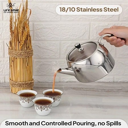 کتری و قوری لایف اسمایل مدل TK1 7G با طراحی زیبا و رنگ طلایی که دارد جلوهای خاص به آشپزخانه شما خواهد داد. این ست زیبا شامل کتری 2 لیتری و قوری 1 لیتری است که برای یک خانواده با جمعیت متوسط ایدهآل خواهد بود. جنس بدنه کتری و قوری از استیل ضد زنگ 18/10 (نیکل-کروم) ساخته شده است. این استیل شامل 18 درصد کروم و 10 درصد نیکل بوده که علاوه بر استحکام و زیبایی آن در برابر هر گونه خط و خش نیز مقاوم است.